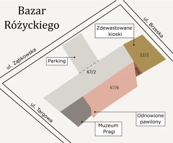 Niestety coś się psuje. Właściciele prywatnej części Bazaru nie potrafią się dogadać. Sytuacja własnościowa nieruchomości wygląda następująco: