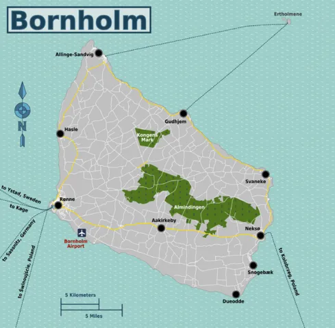 Powierzchnia wyspy to 588 km2, na Bornholmie żyje ok. 40 000 mieszkańców.