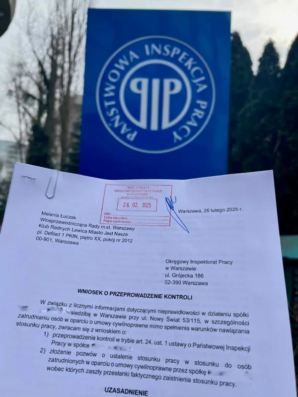 W czwartek, 26 lutego, Melania Łuczak, wiceprzewodnicząca Rady Warszawy, złożyła w tej sprawie wniosek do Państwowej Inspekcji Pracy o przeprowadzenie kontroli