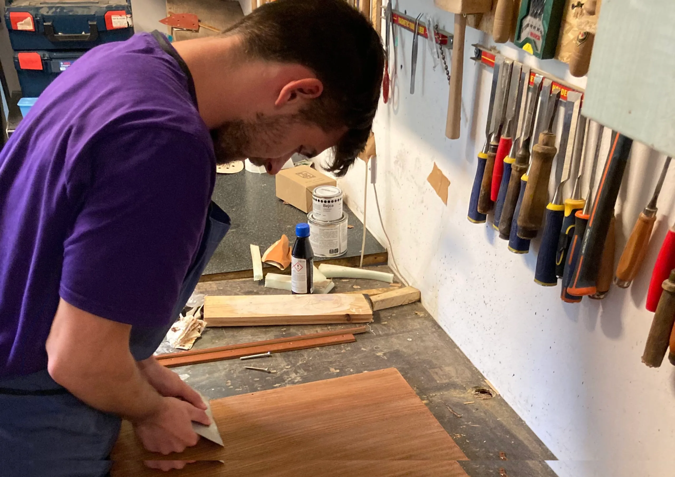 Dodatkowo zapleczem dla pracowni jest niewielki magazyn na Ursynowie, gdzie przechowywane są stare, znalezione meble.