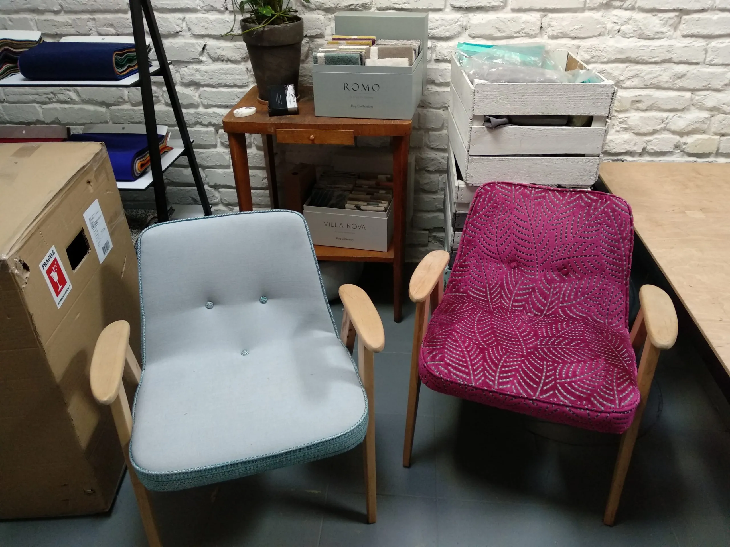 Chodziło o dogodną lokalizację i przestrzeń. Wcześniej był tutaj sklep ze zdrową żywnością, z zapleczem usługowo-administracyjnym. Dziś w przestrzeni zaaranżowanej na pracownię na co dzień pracują trzy osoby - wspólnymi siłami realizowany jest tutaj proces renowacji mebla ,,od A do Z”. Oprócz renowacji mebli współpracujemy z firmą Tamaku która zajmuje się szyciem dekoracji okiennych - zasłon, rolet czy kurtyn. Zdarza się, że osoby zgłaszające się z meblem do renowacji wracają z nieprzewidzianym dodatkiem do wnętrza.