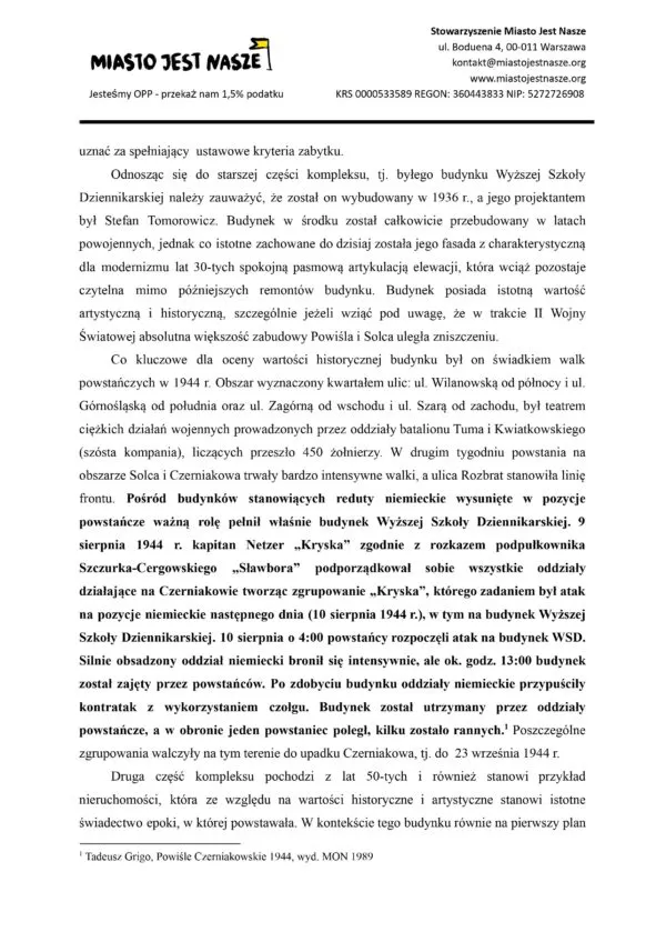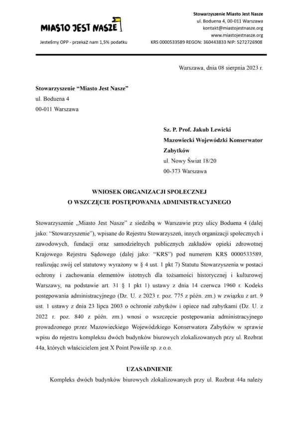 Zabytek i mogiła powstańcza do wyburzenia. Wczoraj złożyliśmy wniosek do Wojewódzkiego Konserwatora Zabytków o wpisanie do rejestru zabytków dwóch budynków biurowych zlokalizowanych przy ul. Rozbrat 44a. Konserwator jest ostatnim organem, który może wstrzymać skandaliczną rozbiórkę.