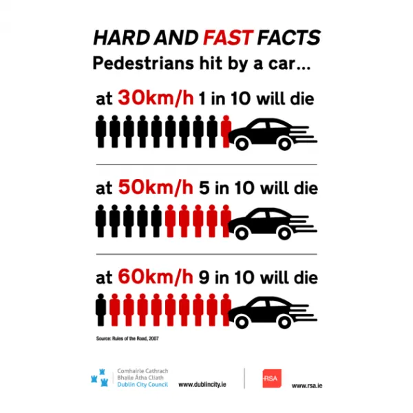Jak prędkość zabija? Grafika przygotowana przez Dublin City Council[/caption]