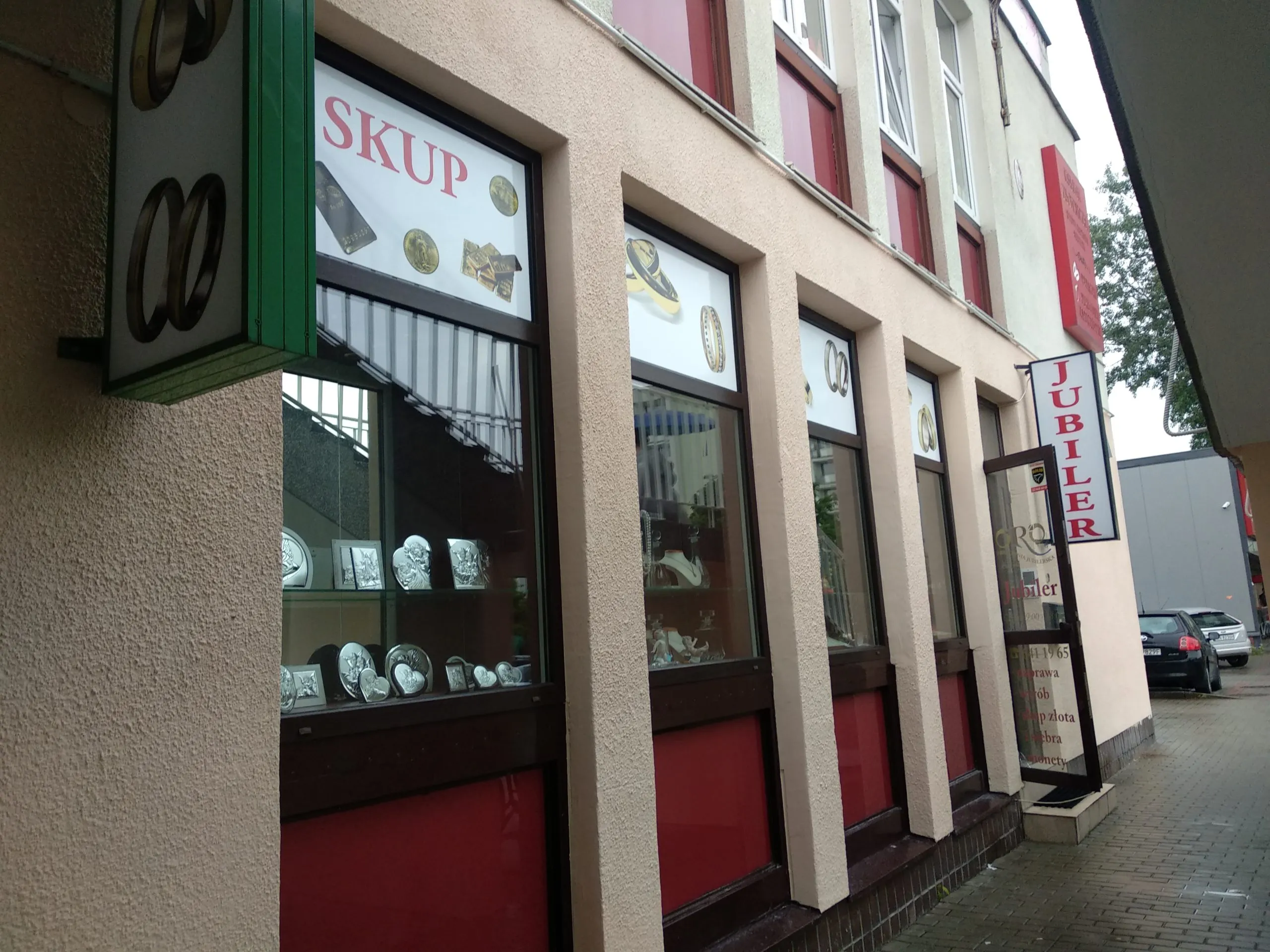 Spacerem od metra Imielin docieramy do pawilonu handlowego. Na pierwszy rzut oka nie widać, że wyremontowany budynek z biało-beżową fasadą, pokryty szyldami i banerami jest tak naprawdę klasycznym, ursynowskim obiektem z lat osiemdziesiątych. Przechodzimy pod tarasem i na parterze natrafiamy na jeden z najstarszych lokali w pawilonie, w którego wnętrzu, nad drzwiami spogląda na lokal św. Eligiusz, patron zawodu jubilerskiego.